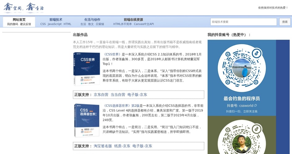 前端开发者张鑫旭的个人主页,他有15年前端一线工作经验,网站核心内容围绕前端技术展开。